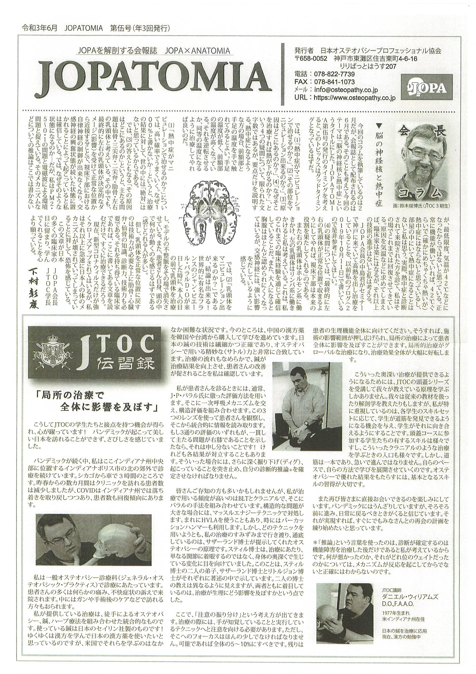 私の所属するJOPA(日本オステオパシープロフェッショナル協会)からJOPA会報詩「JOPATOMIA」第5号が発刊されました。